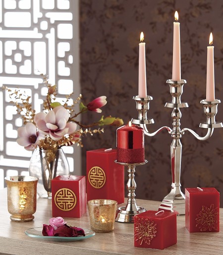 1. 富貴馥紅方型蠟燭4吋 花舞