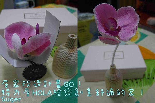 將紙製蘭花造型花朵插入瓶中,慢慢吸附香氣,讓香味漸漸擴散於空間中