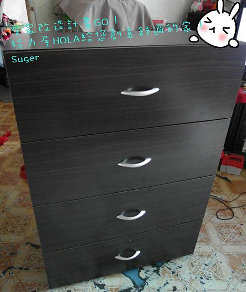 之前買的收納箱,剛剛好放在四抽斗櫃旁邊^__^