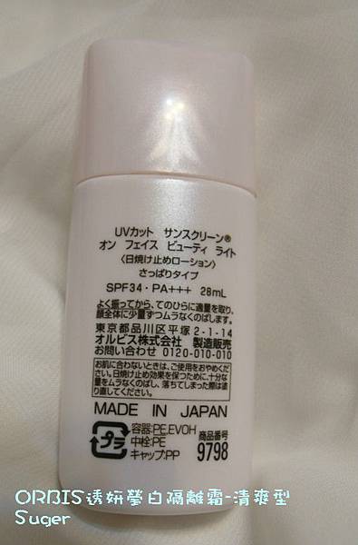 不脫妝,清爽的無油質地, 防曬係數SPF34.PA+++,不含紫外線吸收劑,敏弱肌也可安心使用。