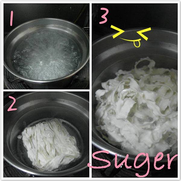 一樣很簡單~水滾丟進去四分鐘就可以撈起來!!!