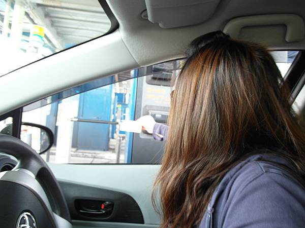 要出口前會經過收費站,收費票給收費人員,會顯示多少錢