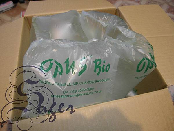打開箱子用空氣塑膠袋保護我的商品兒~
