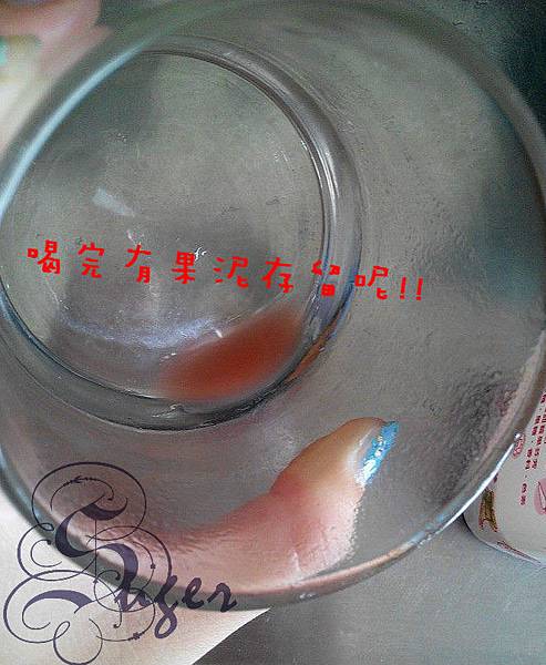 倒入杯裡杯原就有果泥的渣渣~