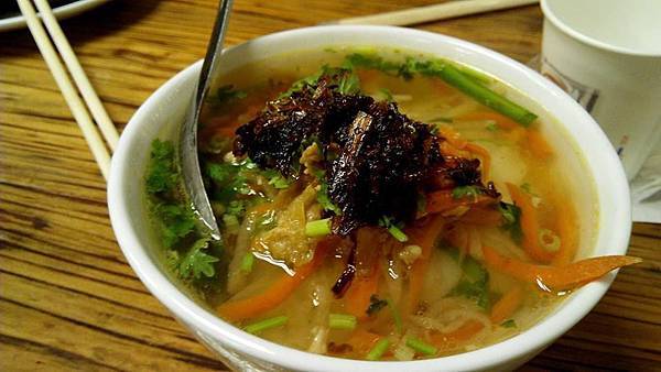 湯粄條 上面有紫菜&紅蘿蔔還有榨菜,吃起來口感很豐富~