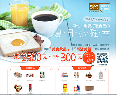現在只要上網索取折價卷~滿2500折300元~ 2014/7/1-9/30