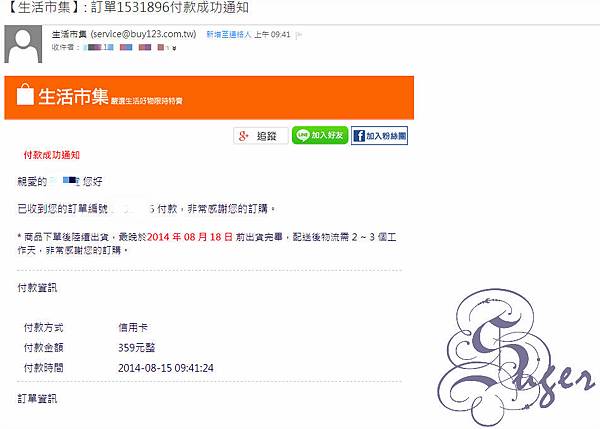 之後會寄MAIL給你,訂單成立,付款成功通知