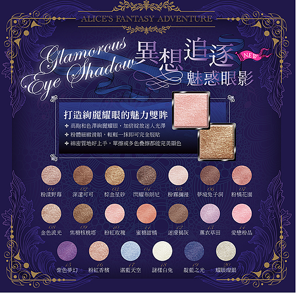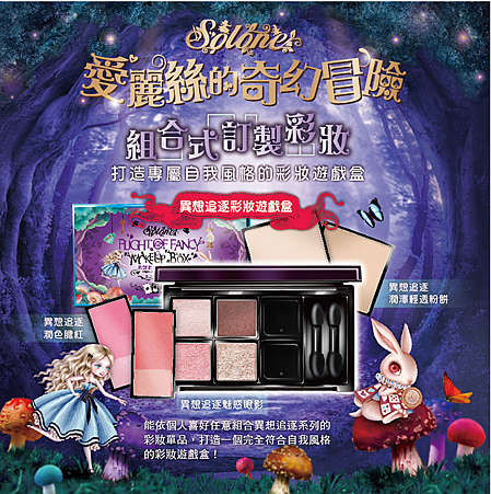 愛麗絲的奇幻冒險彩妝系列推出創新組合式訂製彩妝,只要挑選喜愛的異想追逐主題商品 並組合於