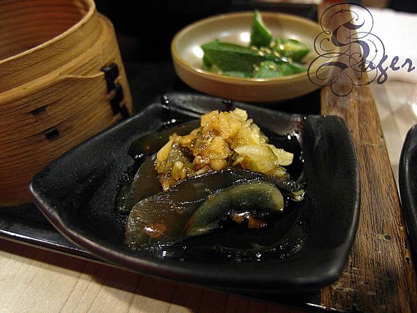 一堆小菜還有港點,葡式咖哩餃+尖椒皮蛋+港式檸檬茶+秋葵