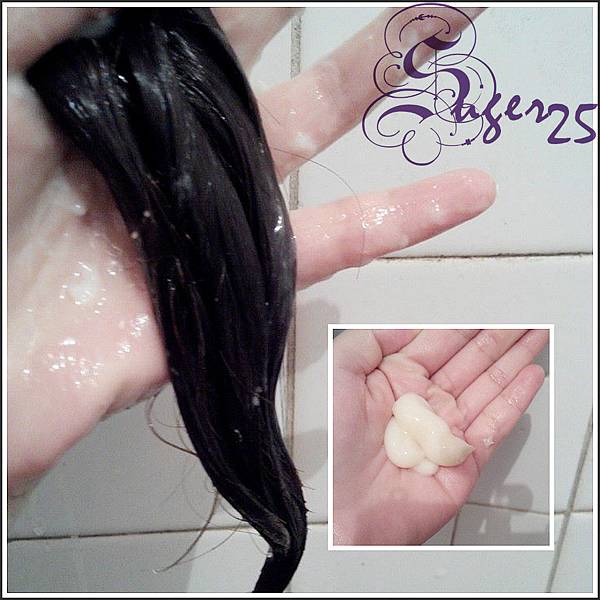 洗之後~還未擦上免沖洗護髮品,整個頭髮有光澤,而且柔順~重點是 帶有淡淡的香味!!!!!!!!!