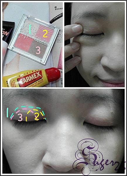 這次我先用1淺色-->在疊上2粉色-->用3咖啡色由後往中間