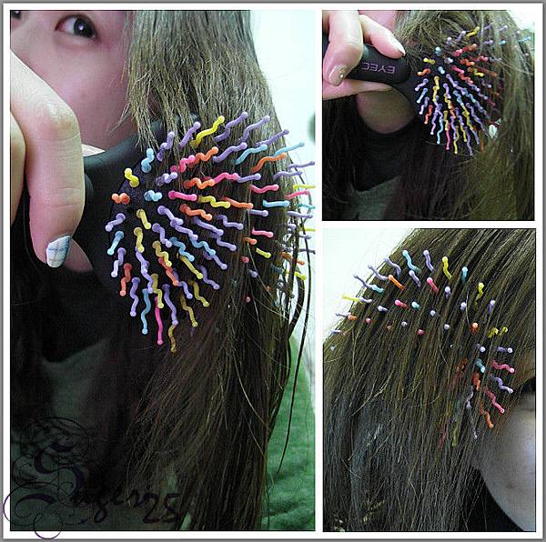 我梳完頭髮看這彩虹梳,發現一根也沒有~覺得超神奇的耶!!!