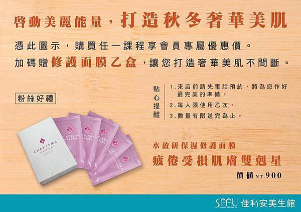 只要憑這圖,購買課程~馬上贈修護面膜乙盒