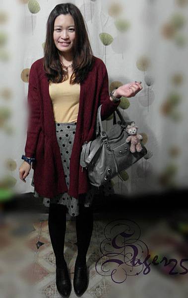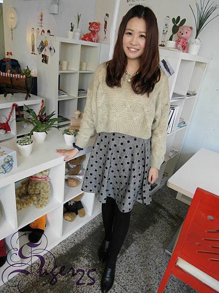 今天有點冷,我搭配了一件短版針織衫裡面加發熱衣!!
