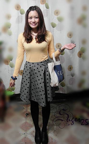 顏色也很好看,搭上灰色點點裙就很好看又顯瘦~![]()