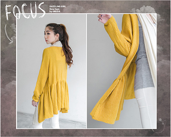 高腰剪裁細摺傘襬開襟連袖針織外套 OB嚴選 $379