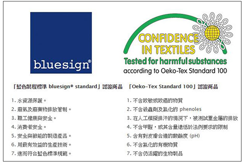 通過歐洲最具環保紡織品權威Oeko-Tex Standard 100及「藍色製程標準