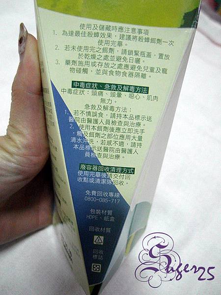 ※ 若未使用完之餌劑,請鎖緊瓶蓋,置放於乾燥之處並避免日曬。