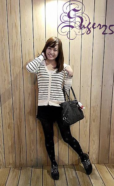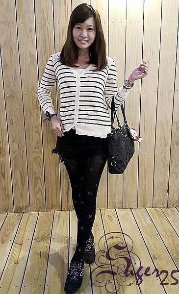 像S比較肉的下半身,就用黑色系黑色短褲+黑色褲襪來達到視覺上,顯瘦的效果