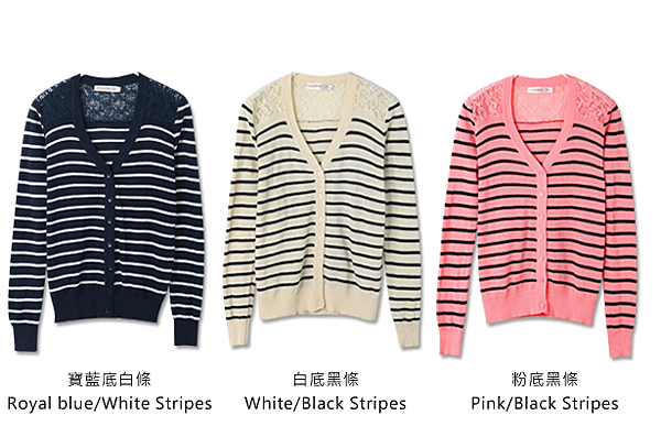 優雅迷人~拼接蕾絲橫條針織罩衫短外套 $309