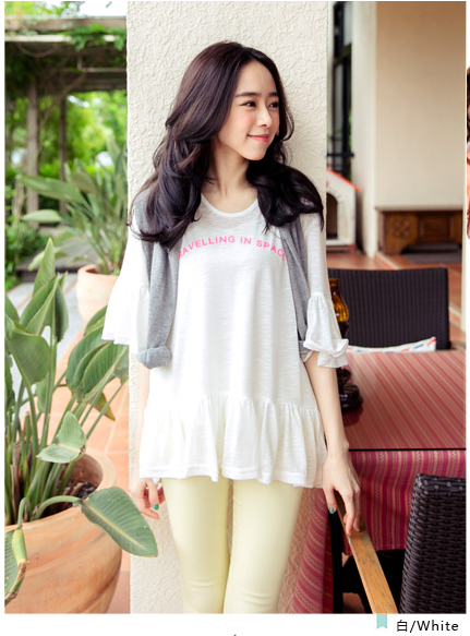 這件有娃娃袖的可愛設計,在袖子上比較寬版,可以修飾肉肉的手臂兒