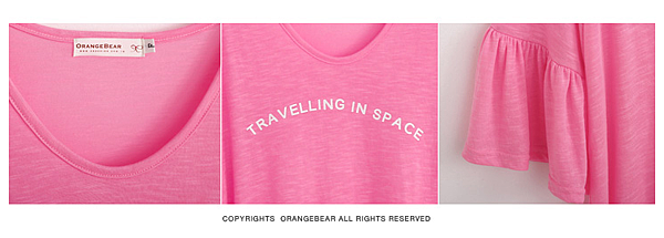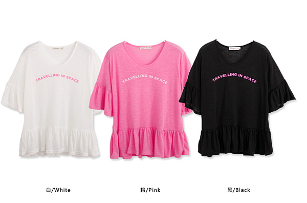 可愛甜風~撞色英文字母喇叭袖傘襬上衣‧3色 粉 OB嚴選 $269