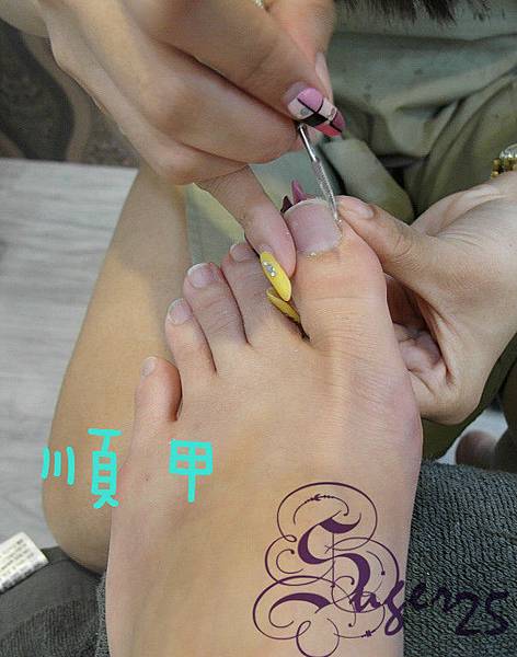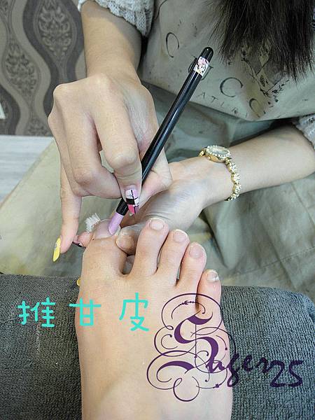 這個是因為我的甲面往下長,腳會容易不舒服,幫我順順甲面,如果來做保養課程的話,是可以幫我磨掉的!