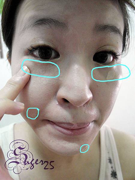 我用在我介意的眼周黑眼圈的地方,還有臉上一些痘痘