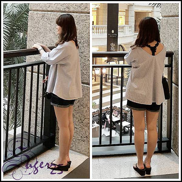 側面~很像穿了一件很短版的小洋裝,後面看是有點半弧形的剪裁