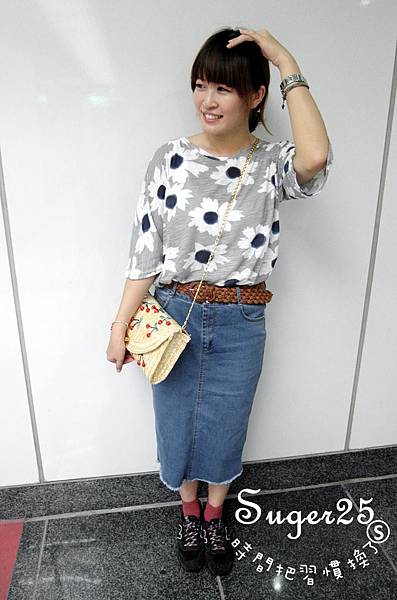 好險沒有倒很貼,這件S選擇~L號,穿起來比較寬鬆一點點,所以中間搭配個編織皮帶