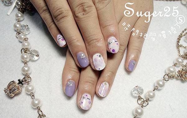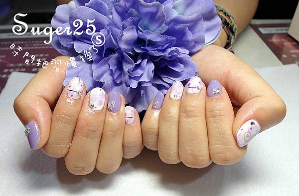 噹噹噹~我的典雅中帶點可愛的~紫色系花瓣美甲兒