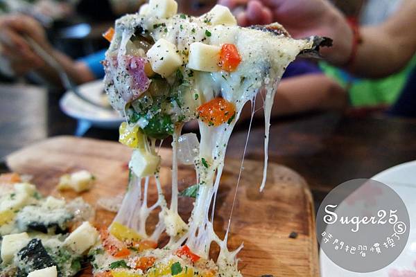 裡面有~墨魚、起司塊、義大利香料、起司、食蔬