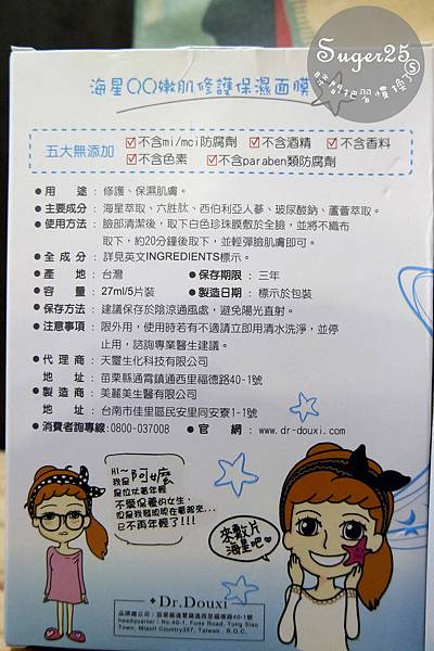 搭配可愛的海星系列插圖~敷面膜心情也跟著變好:))