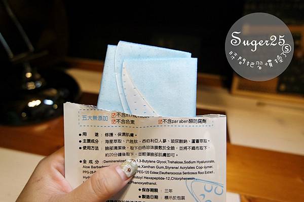 面膜裡面含有蘆薈、玻尿酸、海星萃取液、六胜肽~海藻醣、居然還有西伯利亞人蔘!!