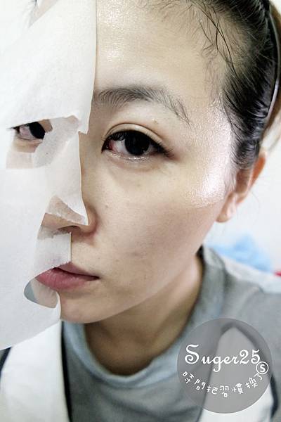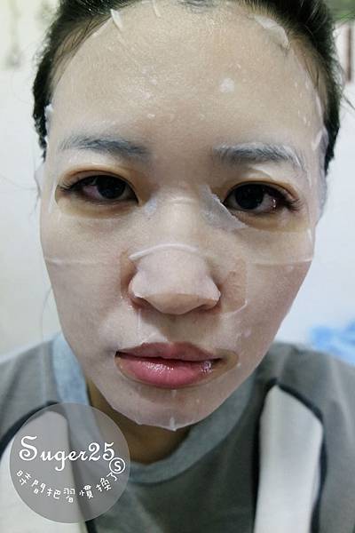 是一個剛剛好適合我的臉型的面膜大小,不用撕開我人中&嘴巴周圍都可以敷到 :))