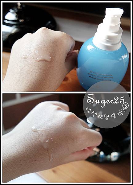 精華液的微透明的水凝質地,超級好推開的~延展性強