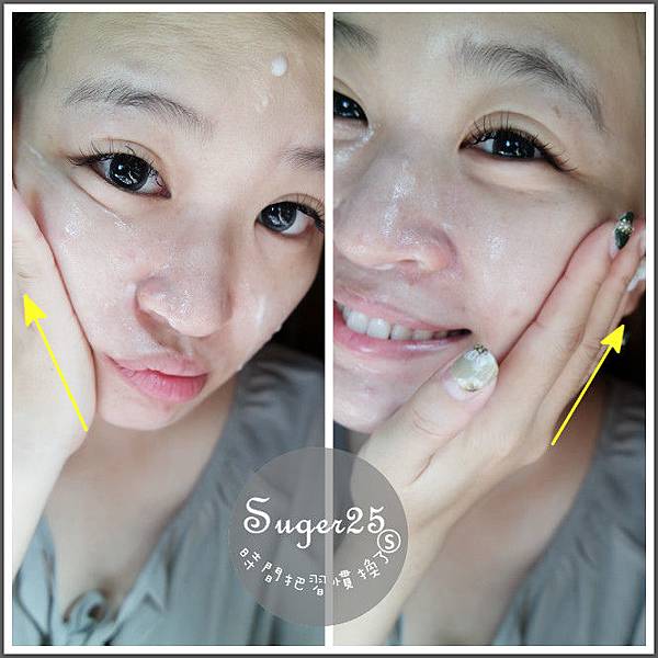可以看到肌膚已經吸飽水,精華液的殘留不多,在敷臉的時候,就慢慢地跑進你的肌膚底層了~