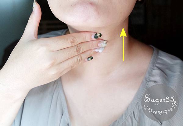 所以為了不要讓他再繼續惡化,在擦保養品時,由下而上的按摩將脖紋推開推開