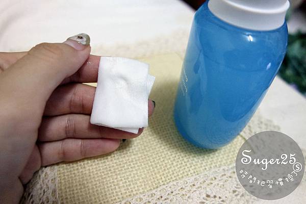 我現在用的是長條形的化妝棉,有點像繃帶一樣,濕敷在臉上