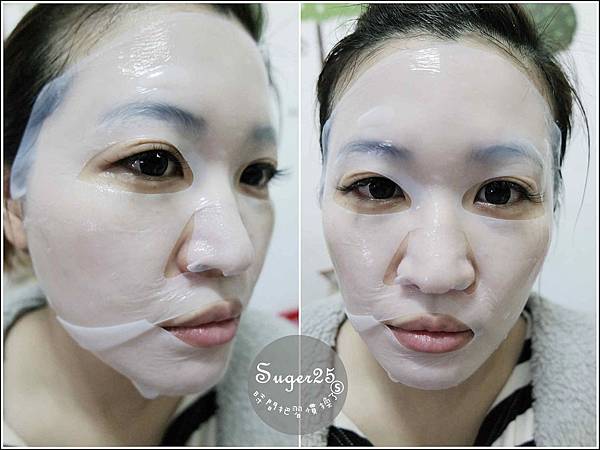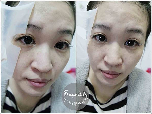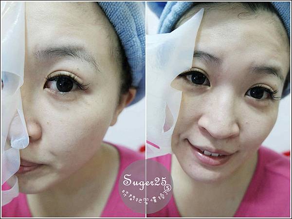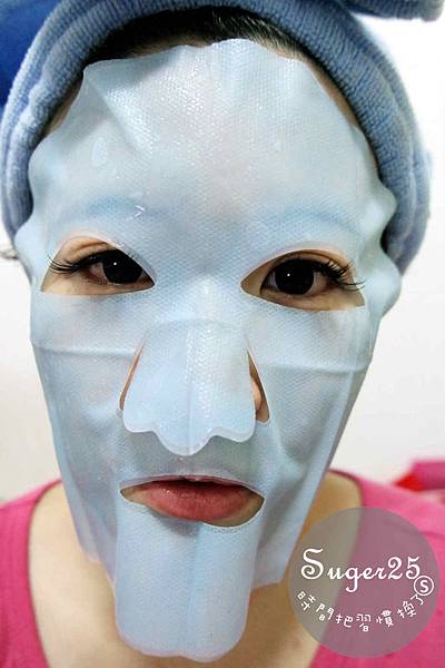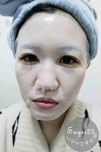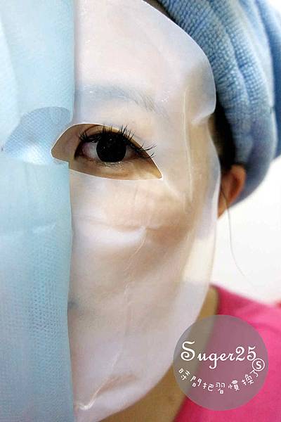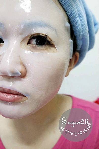 近拍一張~可以看到生物纖維面膜的服貼貼~非常的貼緊我的臉兒