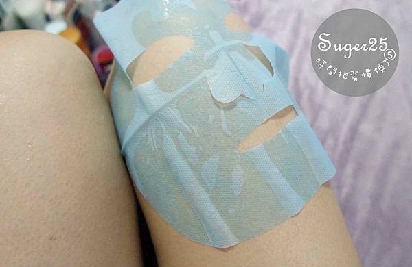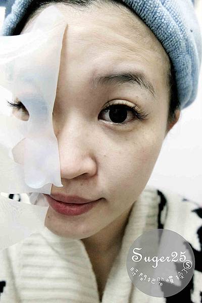 再將生物纖維面膜~拉平整,像我下巴部分我就將它折起來