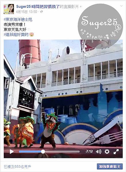 最多人看的就是我在海洋迪士尼15周年晚上的海上表演秀的直播了!!!