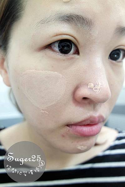 直接用手指就可以抹開~全臉,質地柔滑細膩又好延展,一抹立即融入我的皮膚