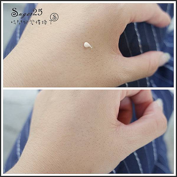 先試在手上看看,帶點微微的米色乳狀,輕輕推開就可以摟!