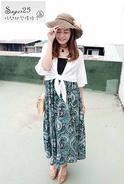 這種花花長裙,超適合配上編織包包&編織帽的!!!!