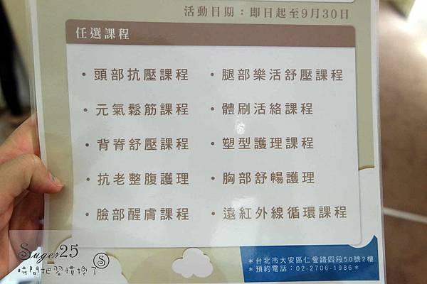 好的~我只能摸摸鼻子另尋出路,找找可以讓自己放鬆又順便保養的SPA做做 哈