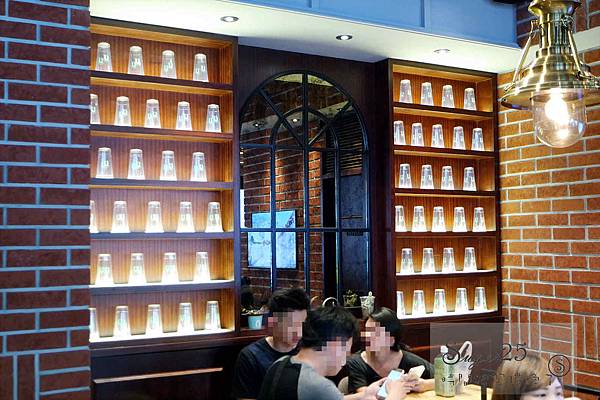 裡面裝潢用簡單的紅磚頭去打造,在刷上~LOGO