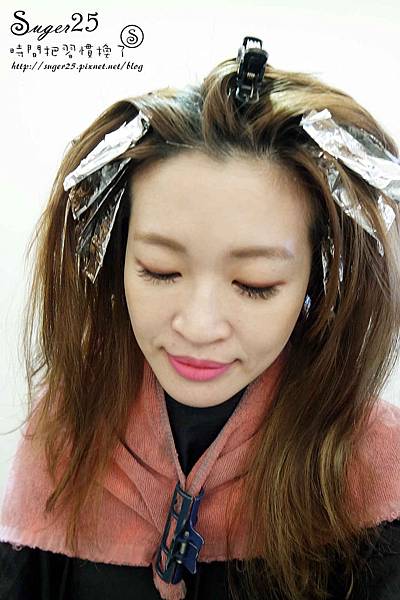 然後沖洗掉後,就整顆頭染 深色的霧面棕