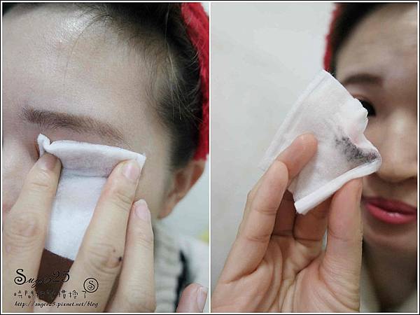 敷在眼睛上一下下,拿下來睫毛膏都卸除了唷!!!完全不用搓揉唷!