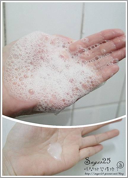 擠出來為淡白色,加水輕輕搓揉就一堆泡泡